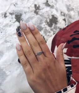 These almond-shaped nails are very short and look so elegant with the beige and floral design.