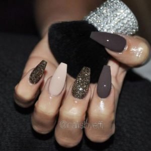 coffin-shaped nails go perfectly with the concept of fall manicure. And