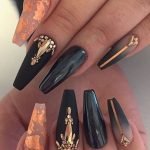 Home Black Acrylic Nails gold glitter tips