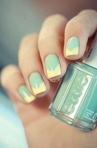 This design is so heavenly and is a subtle classy look. This Cost Me A Mint from the OPI Gel Polish collection is the perfect match to the color in this picture! Use a tip guide or tape to get the best triangular shape.