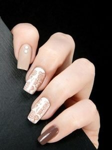 We love this mocha colored look! It is a neutral nude color that goes with anything you own! This is a great everyday look as it is simple yet stylish. Use stencils to achieve the rose patterns on this beautiful design!
