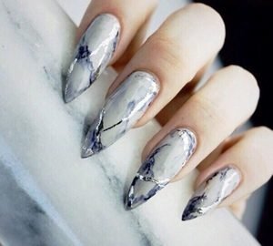The marble effect is so popular and looks so bewitching. Cut your nails into a stiletto shape for a professional and sophisticated look! Click here to see our easy DIY tutorial for a gel nails at home marble look, just use gel nail polishes instead!