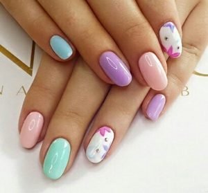 Who doesn’t love cats? We love this feline nail art design. OPI have a wide range of gel color nail polishes, and their color A Great Opera-Tunity is a cute pale pink that matches the in this picture! Use a small nail art brush to draw on the kitty paws!
