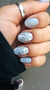 Did you know you could get glittery gel polishes? OPI has the exact same glittery polish called By The Light of The Moon. Add a drop of Alpine Snow to get the perfeect almond blue. This will look perfect at a wedding or a party with a LBD!