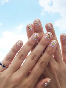 Skip the painting and get flower nails with embellishments. Visit your favorite arts and craft store to find some tiny flower embellishments, all you need is some nail glue and you’ve got a 3D flower design.