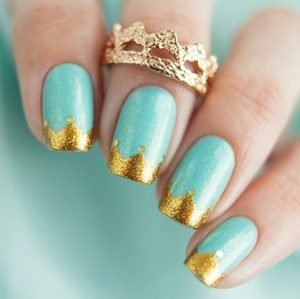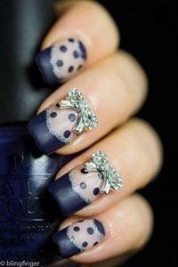 Create an out of this world look with black lacquer polish and blue glittery polish! Your design will definitely blow everyone’s mind as it totally changes from your standard white tips! For the galaxy effect, you will need a glittery blue polish – there is China Glaze’s Dorothy Who? And Formula X’s Transformer Top Coat in Cobalt Confetti.