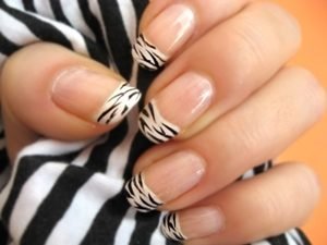 Zebra print is pretty and is a trend that you can wear all year round. The zebra print tips add a little bit of the wild to your French manicure, and would look super cute with a neon colored outfit in the summer, or a grey cable knit and dust pink pants for the winter! Believe it or not, this style is timeless!