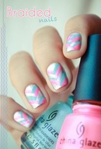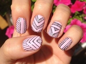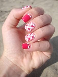 Geometric patterns make great nail designs for the summer.Vary the different pink tones for a lively look that will look like a piece of art! It makes quite an unusual design and will look cute with a black off-the-shoulder dress.