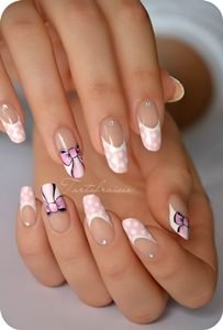 13Bow Manicure Pink Nails