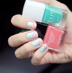 This cute criss cross design is perfect for every day situations and it is so bright and pleasing for the eye. For the ombré base coat Butter London’s Trout Pout Nail Lacquer and Kure Bazaar’s Caicos. Coral and turquoise are very loud staple colors for summer so you need to try this out!