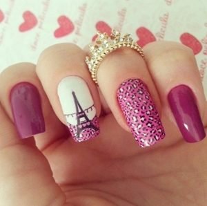 For your inner francophile, try this design out! This design is original with the hint of leopard print yet girly with the bright pink. Draw on your favorite monument with a nail art pen for thin and sleek lines!