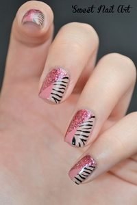 If you are bored of leopard print, then why not try another print? Zebra print is just a big right now and is simpler to do. Add a pink polish and a glitter polish for a feminine touch to your wild nail design!