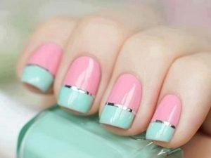 Pink and lilac are a pretty casual concuction. Ideal for every day, the pairing still adds a little extra something to your nails. The color used here is Essie’s Master Plan, and it really makes the bright pink stand out. Teaming pink with subtle colors is a perfect style for everyday – why not try pale blue too?