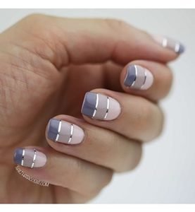 We love this design as it gradually fades from purple to pink. It is ultra glamorous and chic with the silver stripes which can be done with silver striping tape. On the SallyBeauty website you can find the Cina Nail Creations silver striping tape at under 5$! It is a simple, elegant and cheap look!