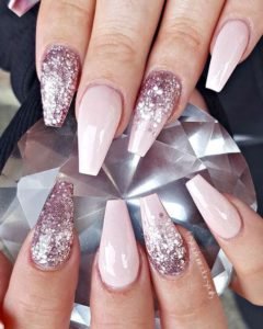 Rose gold is such a glamorous trend, need we explain anymore about how amazing and beautiful these nails are? Change up your nail style by adding a variety of styles such as ombre glitter and a glitter stripe. We’re totally in love with these long coffin shaped nails.
